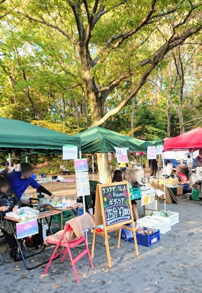 食べ物の屋台以外にも、もみほぐしのコーナーや、野菜を売っているお店も♪